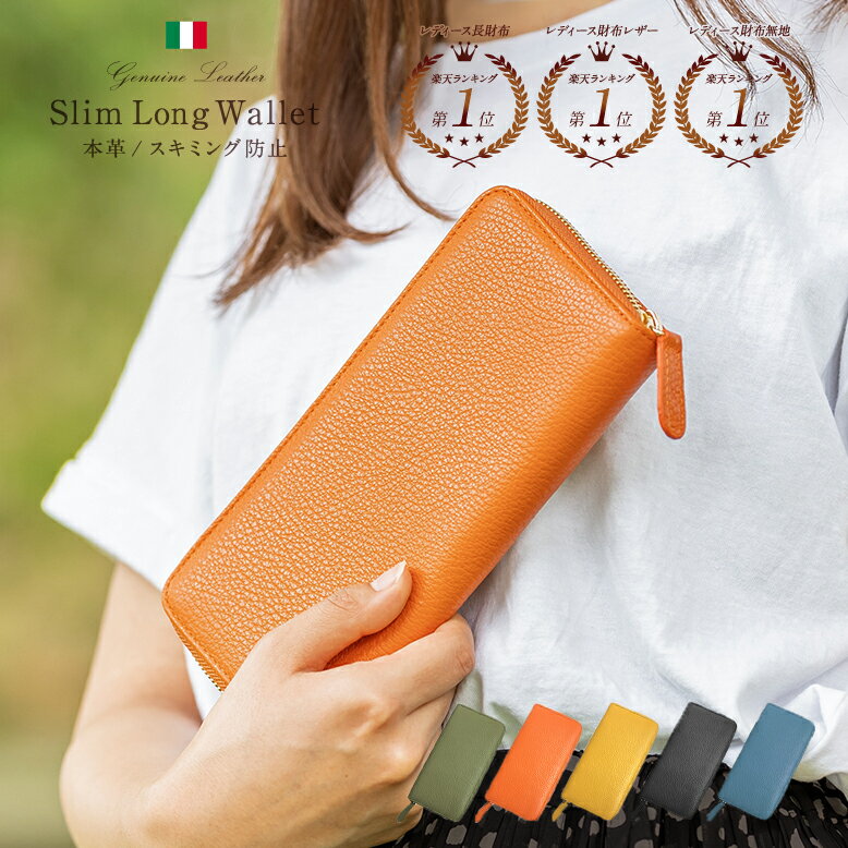 【カードも守る財布】 イタリアンレザー 長財布 レディース レザー 本革 スキミング防止機能付き 財布 ウォレット おしゃれ 大容量 送料無料 大人 きれいめ ブランド シンプル 金運 プレゼント ラウンドファスナー 大人可愛い 緑 イエロー 牛革 グリーン