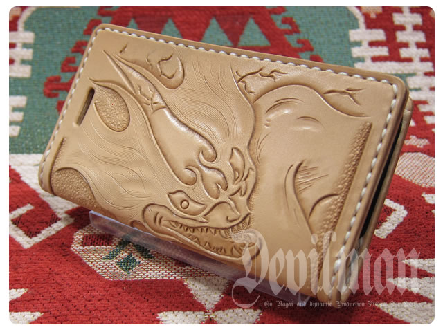 裁断、カービング、染色、縫製、全工程を一人で行い徹底した品質管理をした一品! 第一弾デビルマンウォレットに続く、第二弾『iPhone7、6/6S兼用 手帳型ケース』 2016年、11月中旬発売決定! デビルマンが再びやって来る! 目に見える縫目は、手縫いにて縫製されています。