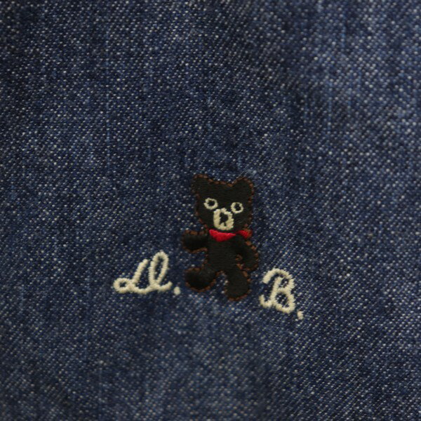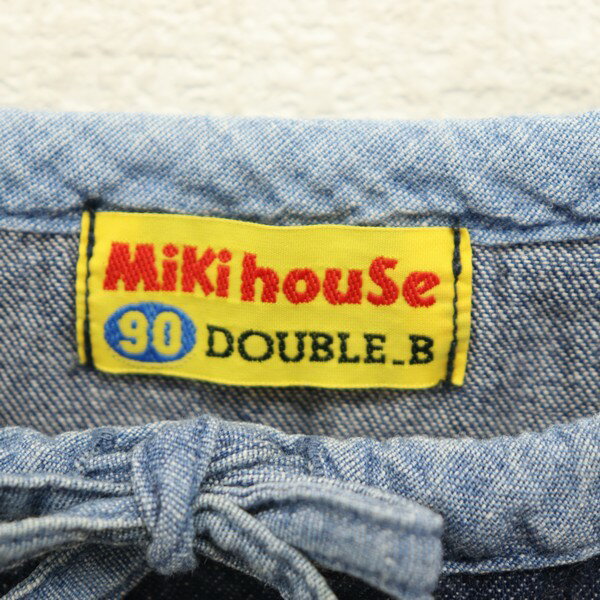 [良品] ミキハウス MIKIHOUSE 90サイズ ワンポイント チュニック 女の子 半袖 クマ 刺繍 ダブルB デニム風 ブルー ブランド古着 【中古】
